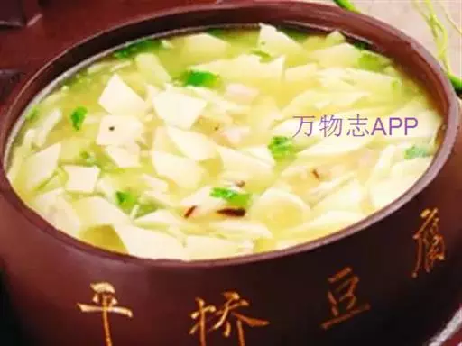 过桥豆腐是一道传统名肴,属于湘菜系。此菜柔滑细嫩,咸鲜适口,菜相美观,勾芡后,用小勺舀上一勺送入口中,感觉滑嫩鲜甜。集色泽、味道与文化内涵于一碟,营养丰富。