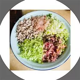 将切碎的皮蛋、香菜、豆腐(用勺子压烂),搅拌在一起,加少许盐,搅均匀,后加少许香油,即可。