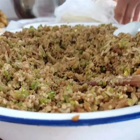 2、香菜,也就是芫荽。摘净洗好后,过一下开水。然后切碎,备用。