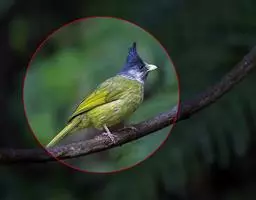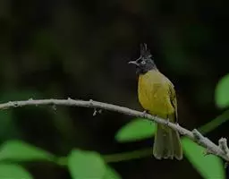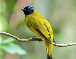 黑冠黄鹎:体长18-21厘米,是一种中等体型偏黄色鹎。整个头、颈、颏、喉黑色,头顶有显著直立的羽冠,…