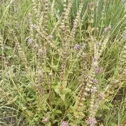 花序长者达25厘米或更多,花轮极多而均疏距,多者达20余轮,仅顶端者较密;苞片下部者叶状,余者亚掌状3裂而有锯齿;萼下有短梗,膨大而为亚球形,前方不裂,膜质,主脉明显,有5齿,齿不等,三角形而有锯齿。