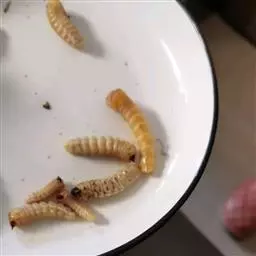 斗米虫为锈色粒肩天牛的幼虫,锈色粒肩天牛主要危害槐树Sophora japonica,…
