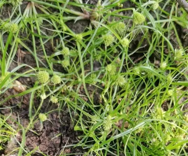 一年生草本,具许多须根。杆密丛生,高2--25厘米,扁三棱形,平滑。叶长于或短于杆,宽1--2.5毫米,平张或有时对折;基部叶鞘紫红色。苞片3--6枚,叶状,基部宽,较花序长很多;长侧枝聚散花序呈头状,卵形或球形,直径5--15毫米,具极多数密集小穗;小穗卵形或披针形,长3--4毫米,宽约1.5毫米,具10--20余朵花;鳞片螺旋状排列,膜质,长圆状披针形,长约2毫米,淡黄白色,稍透明,有时上部中间具黄褐色呈红褐色条纹,具3--5条脉,中脉呈龙骨状突起,绿色,延伸出顶端呈一短尖;雄蕊2,少1,花药长圆形;花柱长,柱头2,少3,通常具黄色乳头状突起。小坚果狭长圆形,三棱形,长为鳞片的1/3--1/2,表面包有一层白色透明疏松的细胞。花果期6---9月。