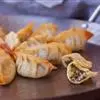 煎饺是中国北方地区特色传统小吃之一,是以面粉和肉馅为主要食材制作成水饺,放凉后用油煎制而成。煎饺表面酥黄,口感香脆。