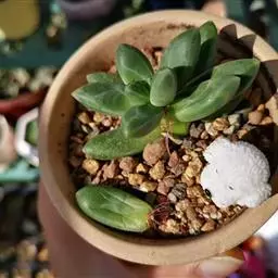 燕子掌,又名景天树、肉质万年青、豆瓣掌等,景天科青锁龙属植物,多肉植物。枝叶肥厚,四季碧绿,叶形奇特,株形庄重,栽培容易,管理简便。宜于盆栽,可陈设于阳台上或在室内几桌上点缀,显得十分清秀典雅。燕子掌植株呈多分枝的亚灌木状,茎明显,圆形,表皮绿色或者黄褐色,叶片上有小点点。