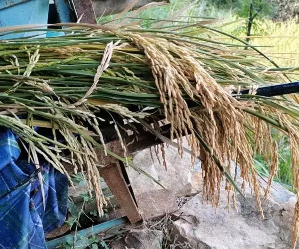 收成:当稻穗垂下,金黄饱满时,就可以开始收成,过去是农民一束一束,用镰刀割下,再扎起,利用打谷机使稻穗分离,现代则有收割机,将稻穗卷入后,直接将稻穗与稻茎分离出来,一粒一粒的稻穗就成为稻谷。