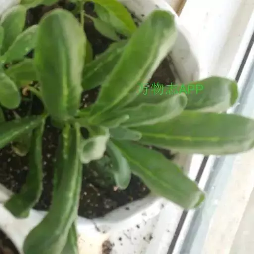 二年生或多年生草本,一般在头年秋季播种,翌年春季开花,高达30-60厘米,全株被灰色星状柔毛覆盖。茎直立,多分枝,基部稍木质化。叶面宽大,叶片长圆形至倒披针形或匙形,连叶柄长6-14厘米,宽1.2-2.5厘米,全缘或呈微波状,顶端钝圆或罕具短尖头,基部渐狭成柄。