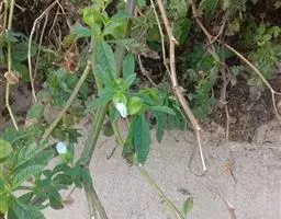 多年生草本,基部常匍匐生根。茎高约40-80cm,基部略带木质,分枝稀疏或不分枝,茎节不甚膨大,常被有柔毛,尤其以幼嫩部分较密。叶长5-15cm,宽2-8cm,长卵形至阔卵形、有时菱状卵形,顶端渐尖,基部不对称狭楔形、下延至叶柄,全缘而波状或者有粗牙齿、有时每边具少数不等大的三角形大牙齿,两面被有柔毛,沿叶脉较密,上面的毛常不脱落,沿叶脉亦有短硬毛;叶柄长约1-3cm。