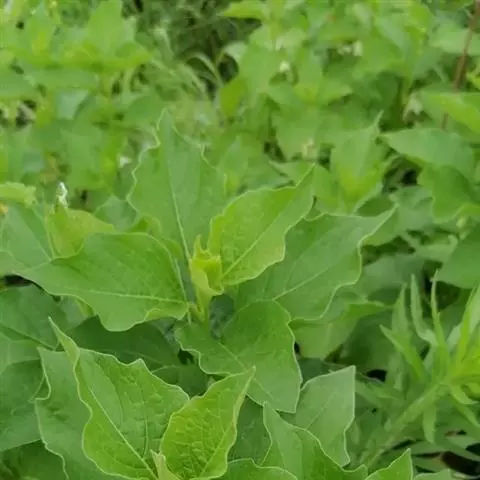酸浆为茄科酸浆属多年生直立草本植物,株高50-80cm,地上茎常不分枝,有纵棱,茎节膨大,幼茎被有较密的柔毛。根状茎白色,横卧地下,多分枝,节部有不定根。叶互生,每节生有1-2片叶,叶有短柄,长1-3cm,叶片卵形,长6-9cm,宽5-7cm,先端渐尖,基部宽楔形,边缘有不整齐的粗锯齿或呈波状,无毛。花5基数,单生于叶腋内,每株5-10朵。花萼绿色,5浅裂,花后自膨大成卵囊状,基部稍内凹,长2.5-5cm,直径2.5-3.5cm,薄革质,成熟时橙红色或火红色;花冠辐射状,白色,雄蕊5,花药黄色,长0.3-0.35cm,子房上位,2心皮2室,柱头头状,长1.0-1.1cm。萼内浆果橙红色,直径1.5-2.5cm,单果重2.5-4.3g,每果内含种子210-320粒,种子肾形,淡黄色,长约0.2cm,千粒重1.12g。