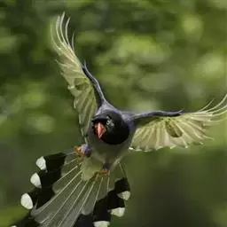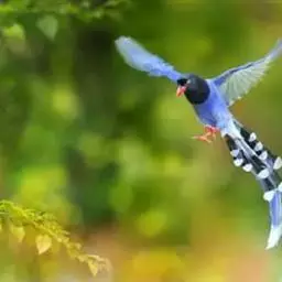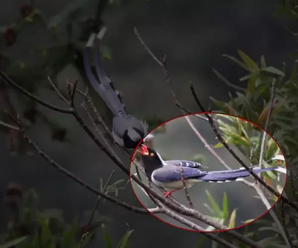 有时还会凶悍地侵入其他鸟类的巢内,攻击残食幼雏和鸟卵。每年的3月至5月是红嘴蓝鹊的繁殖期,在此期间,亲鸟护巢性极强,性情十分凶悍,人若接近其巢区,则啼叫飞舞不止,甚至对人体进行攻击。