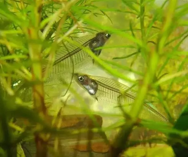 将亲鱼公、母分开饲喂2~3天(相互之间能够看到,可在饲养箱中加一玻璃隔板,将公、母分开)繁殖时将公、母按1~2∶1比例放入产卵池中进行产卵受精。玻璃猫鱼一般凌晨产卵,为防止亲鱼吞噬鱼卵,可用网孔2~3mm的网将亲鱼限制在产卵池的上半部活动,以防止亲鱼吞吃鱼卵。每条雌鱼可产卵300~1000粒。