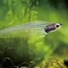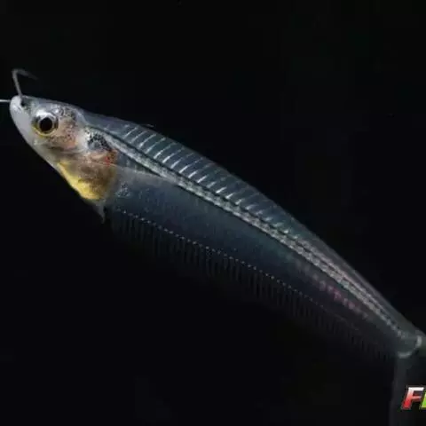 尾柄极短,尾鳍叉形。背鳍退化,臀部和臀鳍基很长,前后鳍条等宽。通体透明,脊骨、刺、鳍条和内脏等清晰可见。色泽淡青如玉,活像一件高档玉雕工艺品。