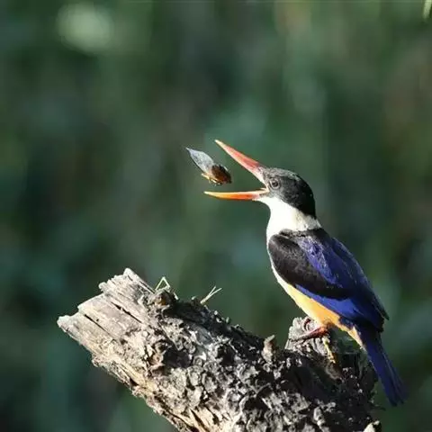 白领翡翠:有50个亚种。体长18厘米,体重35-40克。是一种蓝白色翡翠鸟。…