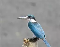 笑翠鸟是澳大利亚东部的翠鸟科的一种食鱼鸟,体长42-46厘米,嘴长8-10厘米,体重500克。是翠鸟家族中和大鱼狗同为体形最大的两种翠鸟之一。以其鸣声似狂笑而得名。笑翠鸟有一个白色的大脑袋,头顶有小棕帽。脸颊有棕色斑块。喙大而有力,黑色。上身灰褐色,腹部灰白交间。雄鸟翅膀有蓝色以做识别。胸腹部白色,尾巴很长,棕色和黑色相间。腿短灰色。