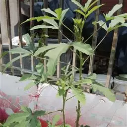 咖啡黄葵 Moench)亦称黄秋葵,是锦葵科一年生草本植物。茎圆柱形,疏生散刺。叶掌状,裂片阔至狭,…