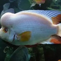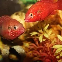 红魔鬼鱼,学名为厚唇双冠丽鱼,也叫火鹤鱼,是慈鲷科丽体鱼属下的一种观赏鱼类。血鹦鹉鱼的父本鱼种。…