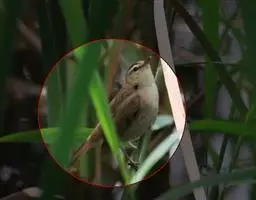 雌鸟上体橄榄褐色,尤以腰和尾上覆羽较棕,两翅褐色,羽缘棕色,中央一对尾羽棕色,其余尾羽褐色或暗褐色,羽缘棕色,颈侧有一辉蓝色斑。颏喉皮黄色,其余下体赭灰色或皮黄橄榄褐色。翅下覆羽和腋羽白色。