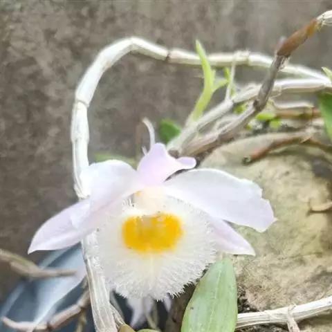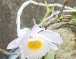 喉红石斛(学名:Dendrobium christyanum Rchb. f.):附生。茎丛生,直立,粗短,近棒状纺锤体。叶2-4枚,生于茎顶。总状花序顶生,花序轴长5-7毫米,具12朵花;花开展,除唇瓣的中裂片金黄色和侧裂片的内面橘红色外,均为白色;花瓣倒卵形,花径2-3厘米,白色,花瓣椭圆状矩圆形;花瓣3裂,中裂片边缘波状,侧裂片近半卵形;中裂片近肾形,下弯,先端浅2裂;唇瓣具橘黄色斑,唇盘上具3条粗糙的纵褶片。花期7月,常在夏季和早秋开花,花期长。