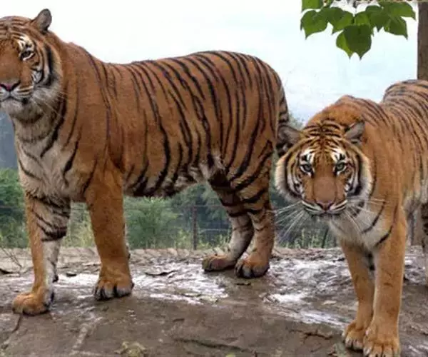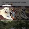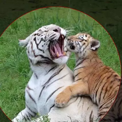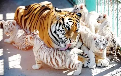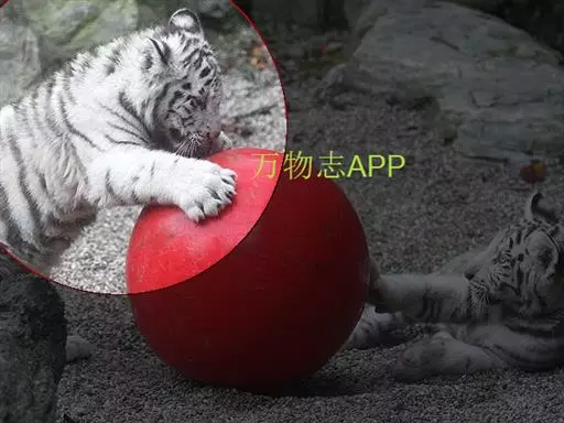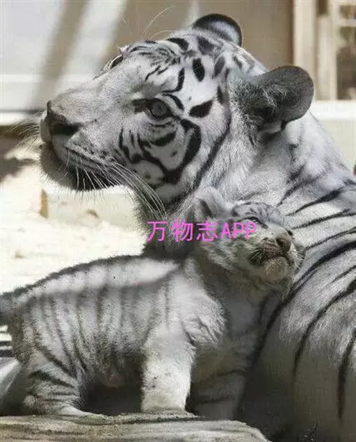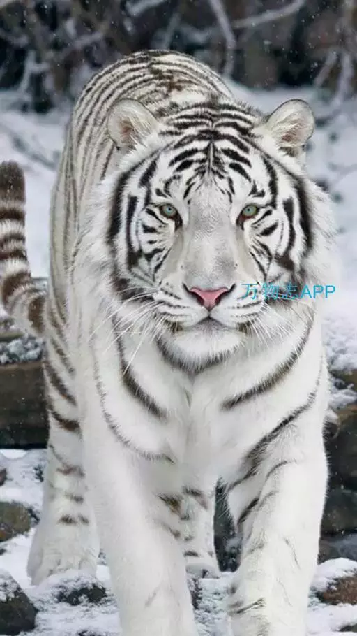 2、雪虎,全身白色,有淡淡的棕色斑纹,野生已灭绝,数量比白虎少得多。