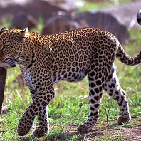 非洲豹是豹的指名亚种,体重40-90千克,时速可达70km。肌肉发达,脖子和头部结实有力。头小尾长,…