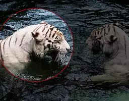 4.纯白虎,全身白色,没有斑纹,全世界动物园里仅发现过两例。