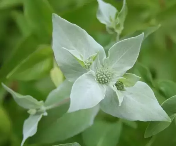 银边翠(Euphorbia marginata Pursh.)是大戟科大戟属植物,一年生草本,根纤细,极多分枝,茎单一,自基部向上极多分枝,高可达60-80厘米,叶互生,椭圆形绿色,苞叶椭圆形,近无柄花序单生于苞叶内或数个聚伞状着生,雄花多数,雌花1枚,种子圆柱状,淡黄色至灰褐色,花果期6-9月。