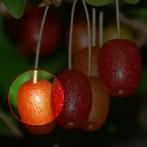 果实椭圆形,长9-l2毫米,直径6-10毫米,粉红色,密被银白色鳞片;果肉乳白色,粉质;果梗短,粗壮,长3-6毫米。花期5-6月,果期9月。