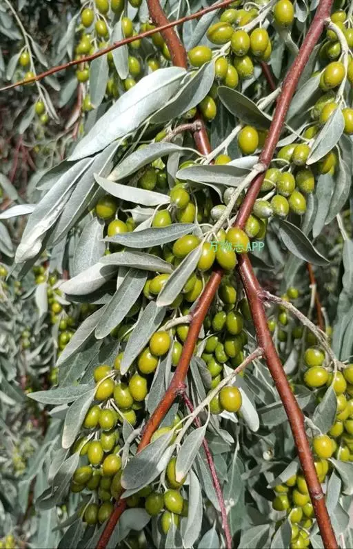 沙枣树 沙枣为落叶乔木它的生命力很强,具有抗旱,抗风沙,耐盐碱,耐贫瘠等特点。天然沙枣只分布在降水量低于150毫米的荒漠和半荒漠地区。