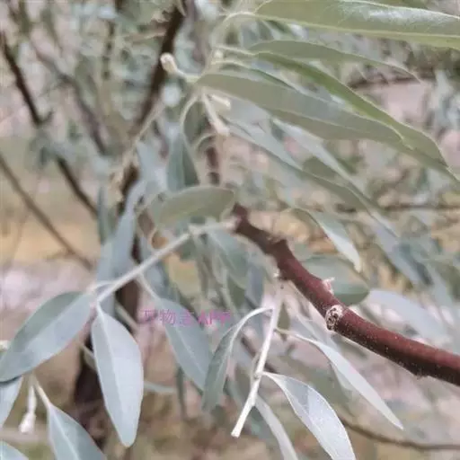 沙枣,别名:七里香、香柳、刺柳、桂香柳、银柳、银柳胡颓子、牙格达、红豆、则给毛道、给结格代,拉丁文名:Elaeagnus angustifolia Linn. 被子植物门;双子叶植物纲;桃金娘目;胡颓子科;胡颓子属;沙枣,