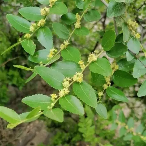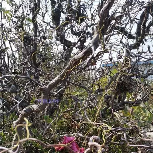 龙爪枣。拉丁名:Ziziphus jujuba Mill. var. jujuba cv. Tortuosa,鼠李科枣属的一种植物。株高10~15m,树皮褐色或灰褐色,枝条呈“之”字形弯曲,迥还盘转,尤如卧龙,具皮刺。叶互生,卵形至卵状披针形,聚伞花序腋生,花黄绿色,花期5~6月。
