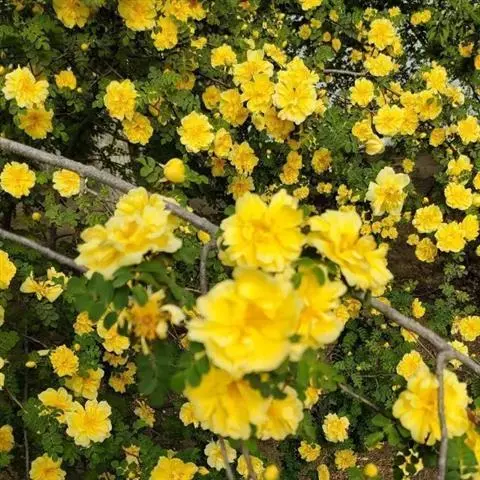 黄刺玫是蔷薇科蔷薇属的直立灌木。高2-3米;枝粗壮,密集;小叶片呈宽卵形或近圆形,边缘有圆钝锯齿,…