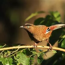 橙翅噪鹛:是噪鹛科、彩翼噪鹛属的中型鸟类,体长22-25厘米。头顶深葡萄灰色或沙褐色。上体灰橄榄褐色,…