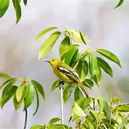 蓝翅叶鹎:小型鸟类,体长15-18厘米。雄鸟通体草绿色,尾蓝绿色,肩和翅亮蓝 色,胸缀有黄色,…