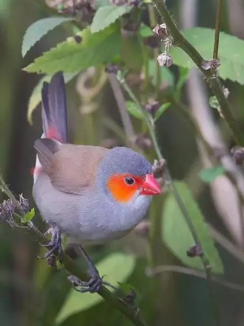 红梅花雀小型鸟类,体长9-10厘米。雄鸟通体朱红色,背、肩、胸等满布白色小斑点,…
