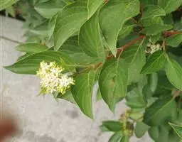 小梾木 落叶灌木,高1-3米,稀达4米;树皮灰黑色,光滑;幼枝对生,绿色或带紫红色,略具4棱,被灰色短柔毛,老枝褐色,无毛。