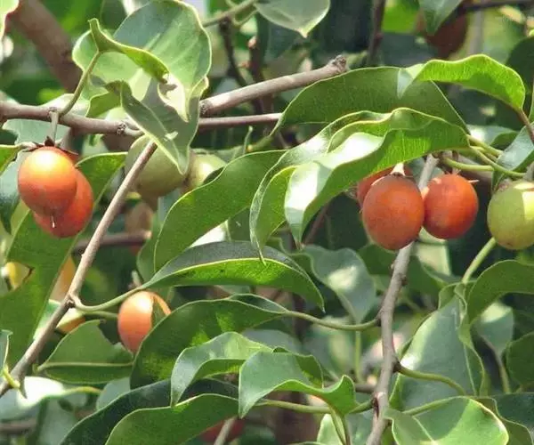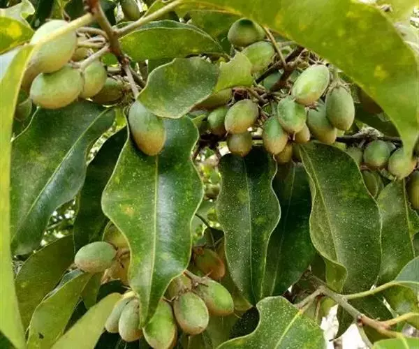 果实为肉质、不开裂的浆果,黄色或红褐色,成熟果实可食,内含粉状的黄色果肉及1粒大而硬的褐色种子。种子有1个基生的小而圆的种脐。每年开花2次,花期3月和9月,果实成熟期6月和10-11月。