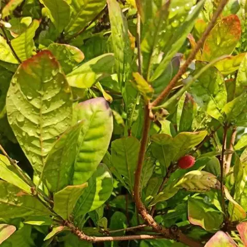 乔木或大灌木状,树高20米,有乳汁。单叶,互生,螺旋状排列,革质有光泽,全缘,羽状脉,托叶早落。