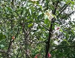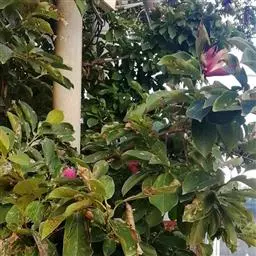 定植后至成林前,每年在夏、秋两季各中耕除草1次,并将杂草覆盖根际。定植时应施足基肥,在冬季适施堆肥,或在春季施人畜粪水,促进苗木迅速成林。始花后,每年应在冬季增施过磷酸钙,使蕾壮花多。为了控制树形高大,矮化树干,主干长至1m高时打去顶芽,促使分枝。在植株基部选留3个主枝,向四方发展,各级侧生短、中枝条一般不剪,长枝保留20~25cm。每年修剪的原则是,以轻剪长枝为主,重剪为辅,以截枝为主,疏枝为辅,在8月中旬还要注意摘心,控制顶端优势,促其翌年多抽新生果枝。 [3-4]