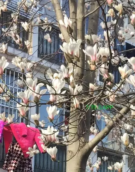 白色的望春玉兰 玉兰树干光滑,枝叶茂密,树形优美,花色素雅,气味浓郁芳香,早春开放,花瓣白色,外面基部紫红色,十分美观,夏季叶大浓绿,有特殊香气,逼驱蚊蝇;仲秋时节,长达20厘米的聚合果,由青变黄红,露出深红色的外种皮,令人喜爱;初冬时报蕾满树十分壮观,为美化环境,绿化庭院的优良树种,它的苗子还是广玉兰、白玉兰和含笑花的砧木。