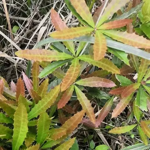 豪猪刺(学名:Berberis julianae Schneid.)是小檗科,小檗属常绿灌木,老枝黄褐色或灰褐色,幼枝淡黄色,茎刺粗壮,三分叉,叶革质,椭圆形,披针形或倒披针形,花簇生,花黄色;小苞片卵形,外萼片卵形,内萼片长圆状椭圆形,花瓣长圆状椭圆形,浆果长圆形,蓝黑色,花期3月,果期5-11月。
