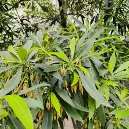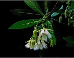 水石榕(学名:Elaeocarpus hainanensis Oliver),又名“水柳树”“海南胆八树”“海南杜英 ”,是杜英科,杜英属下的常绿小乔木。叶革质,聚生于枝顶,狭披针形至倒披针形;总状花序腋生,花白色,倒卵形;核果纺锤形,花期6-7月。
