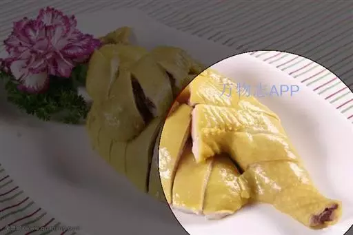 2. 制白切鸡的关键在以微沸水浸至仅熟,用“虾眼水”。再用冷开水过冷而成。鸡的熟与否可以摸捏鸡的腿部,以大脚筋紧缩,鸡腿肉紧实,鸡胸肉紧实为熟。