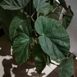 真菌病害,由葡萄孢菌引起的灰霉病症状:秋海棠叶片灰霉病经常发植株的下部,尤其是根茎处与基质接触的地方更容易感染病菌,被水浸润的病斑很快会扩散到整个叶整个植株,受害区域呈现坏死斑点,逐渐由褐色转变为黑色。当夜间温度较低、白天温度较高而且湿高时,病原孢子生长加快,受害的叶片上会长出灰绿色的霉状物。
