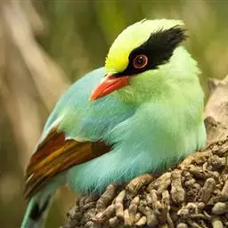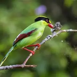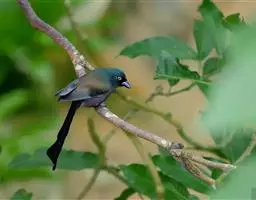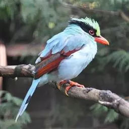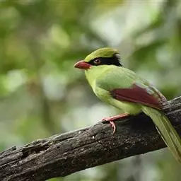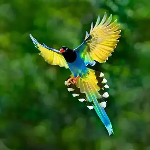 蓝绿鹊:中型鸟类,共有5个亚种。体长36-38厘米。尾长,嘴、脚红色。通体羽色主要为草绿色,…