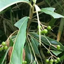 采收 紫金牛在移栽后第3年,直播后第4年的10~11月份采收。采收的原则是采老枝(包括根状茎)留嫩枝(包括根状茎);一般留嫩枝2~3枝。鲜材产量为100kg/亩左右。