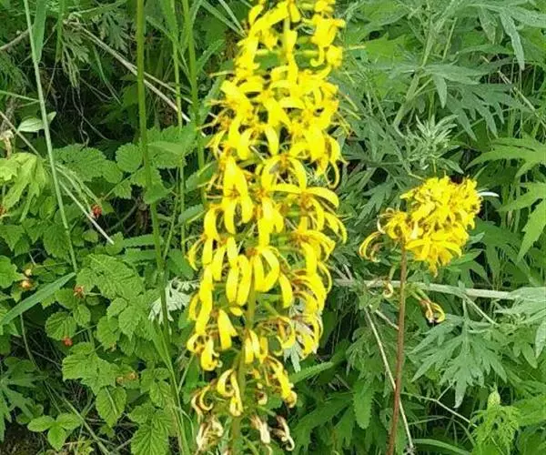 总状花序长4.5-42厘米,常密集;苞片卵形或卵状披针形,下部者长达3厘米,宽0.8-2厘米,向上渐小,全缘或有齿;花序梗长4-12毫米,稀下部者长达8厘米;头状花序多数,辐射状;小苞片狭披针形,全缘,光滑,近膜质;总苞宽钟形、钟形或钟状陀螺形,基部圆形,长7-14毫米,宽6-11毫米,总苞片7-10,2层,披针形或长圆形,宽2-5.5毫米,先端急尖、钝三角形或渐尖,背部光滑,边缘膜质,有时紫红色。舌状花6-10,黄色,舌片倒披针形或长圆形,长10-22毫米,宽3-5毫米,先端钝,管部长5-10毫米;管状花多数,长8-13毫米,管部长4-7毫米,几冠毛白色与花冠等长。瘦果长圆形,长达10毫米,光滑。花果期7-10月。