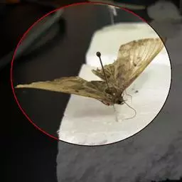 玉带凤蝶蛹长30mm,体色多变,有灰褐、灰黄、灰黑、灰绿等,头顶两侧和胸背部各有l突起,胸背突起两侧略突出似菱角形。