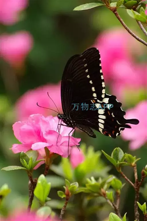 玉带凤蝶翅展77-95mm,雌雄异型,雌蝶有多个型态,斑纹变化很大,翅黑色。雄蝶横贯全翅似玉带,故得名。