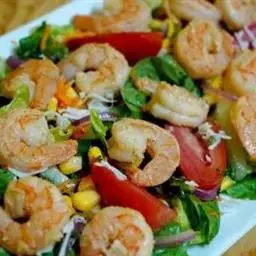 海鲜沙拉是一道美食,主要食材是虾。