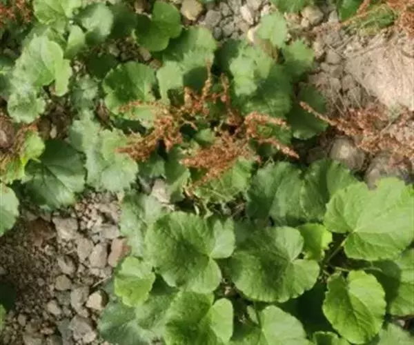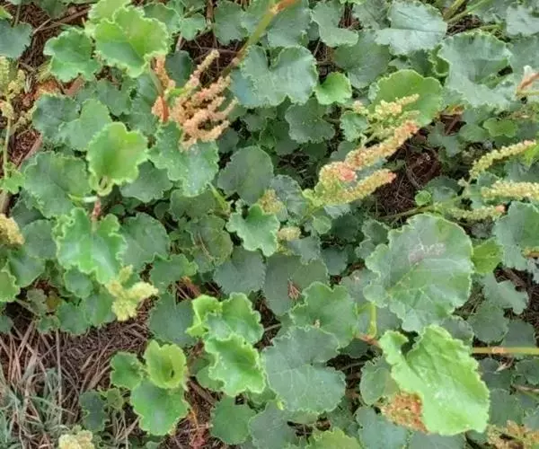 多年生草本,高30-50厘米。根状茎粗壮,木质,直径0.7-2厘米。茎直立,通常数条,自根状茎发出,具深纵沟,密生短硬毛。无基生叶,茎生叶叶片圆心形或肾形,长3-4厘米,宽4-5厘米,近肉质,顶端圆钝,基部宽心形,边缘呈波状,上面无毛,下面沿叶脉疏生短硬毛,具5条基出脉;叶柄粗壮,长4-9厘米,密生短硬毛;托叶鞘膜质,筒状,松散,具数条纵脉。